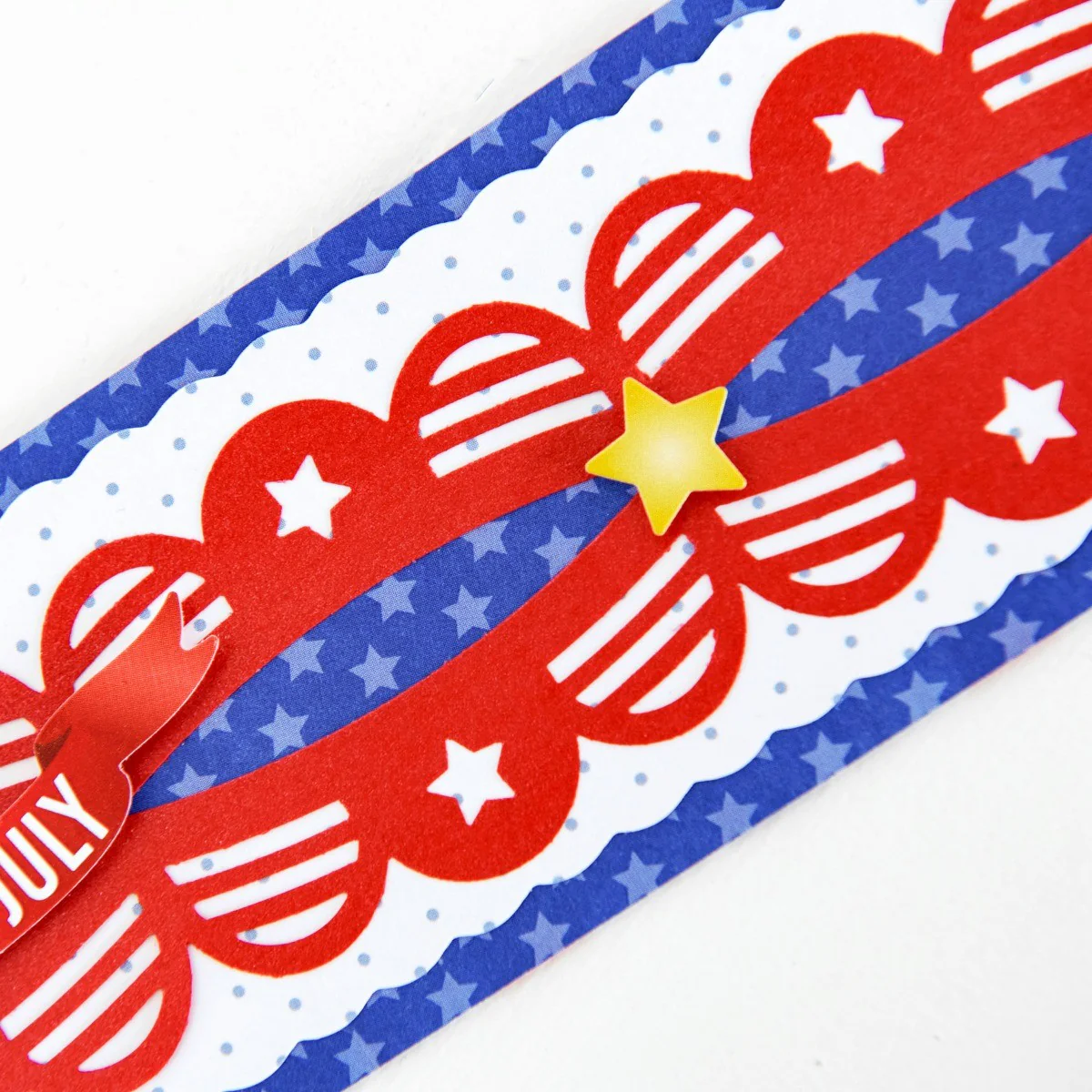 Bring patriotism to your layouts and crafts with the Flag Banner Border Punch! This punch creates a continuous flag banner border that will fan in fun festivities to your layouts, and you’ll love it for projects based on U.S.’s Independence Day, patriotic parades and floats, backyard barbecues and grill outs and birthday parties.