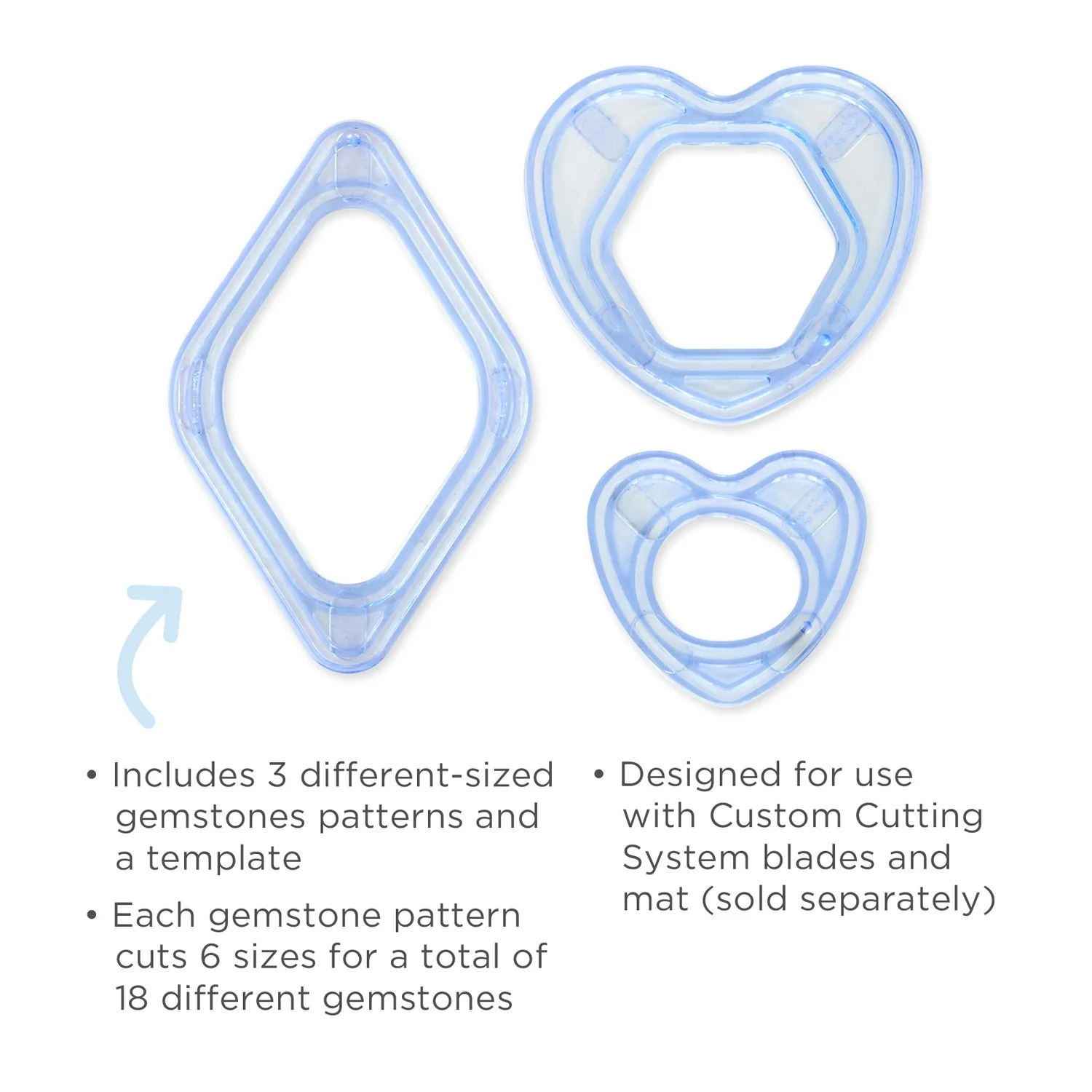 For use with the Creative Memories Custom Cutting System, the Gemstone Pattern will add fun to any scrapbook page or paper craft project! Creates gemstone shapes as large as 8.5 inches and as small as 1.25 inches easily. Just grab a different blade to change up the size.