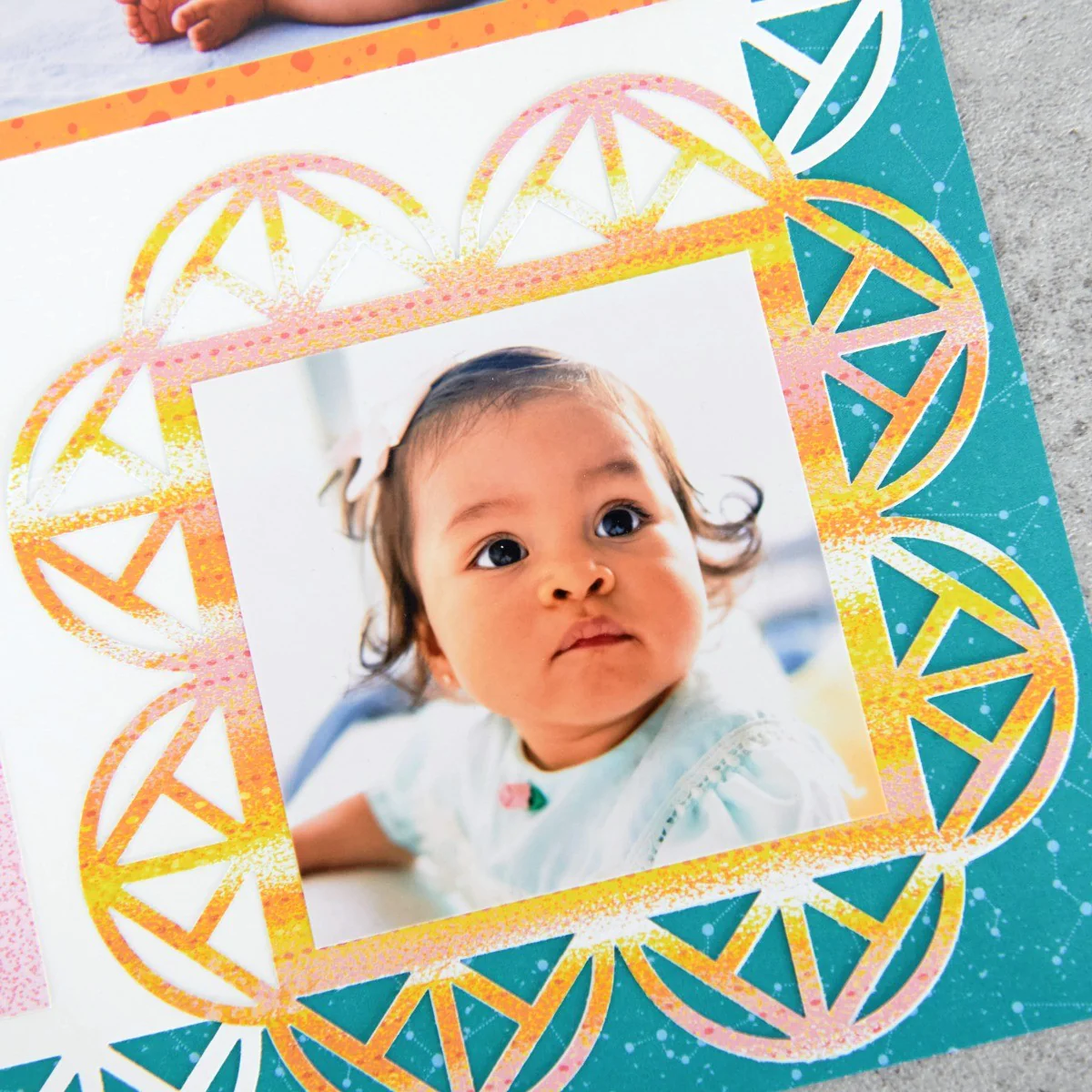 Shape up your projects with the Geometric Frame Punch, which creates a pleasing angular aesthetic with its half-circle and triangles cutout design — perfect for making borders or frames!