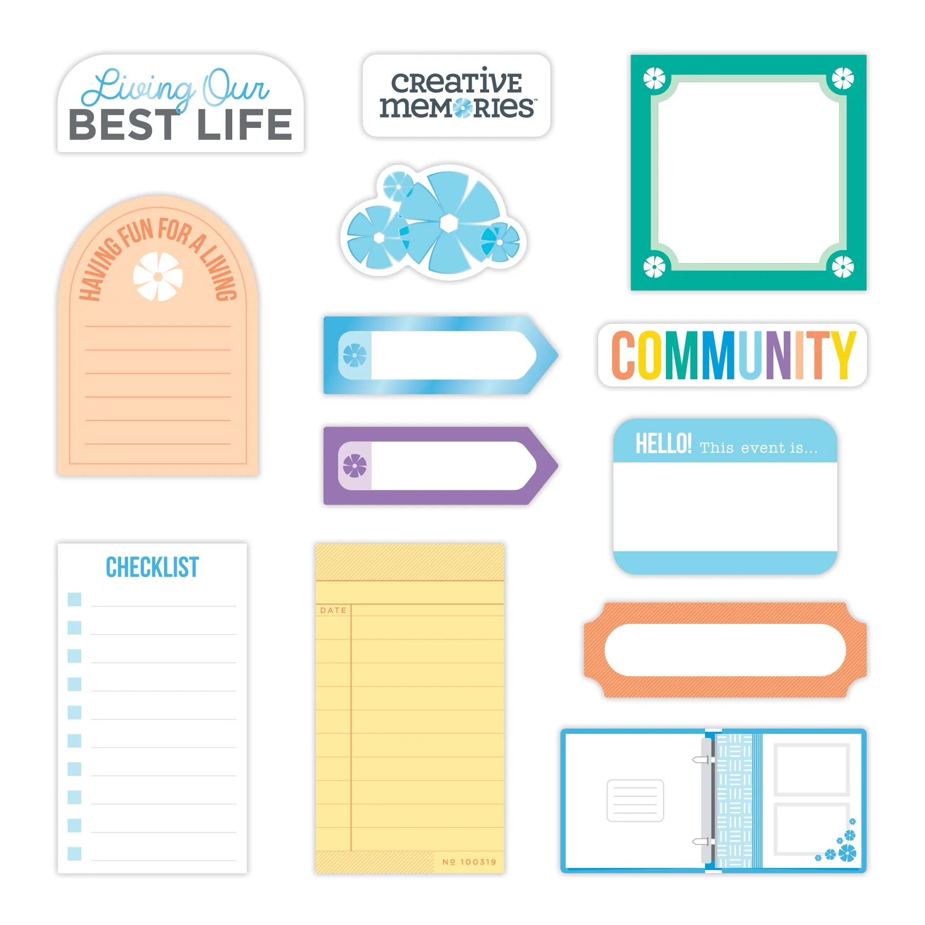 Enhance your layouts of scrapbooking fun with Scrap Happy 2 Foiled Embellishments. These Creative Memories-themed embellishments â 21 of which are accented by vivid blue foil â include icons like the CM shutter, Scrappie the Bear, photo albums and tags, as well as titles like âLaunch day,â âSisterhoodâ and âMemories.â Theyâre perfect for memories cropping with your Advisor and friends, helping the kiddos create their first page, photos of loved ones flipping through their albums and other scrapbook-worthy moments.